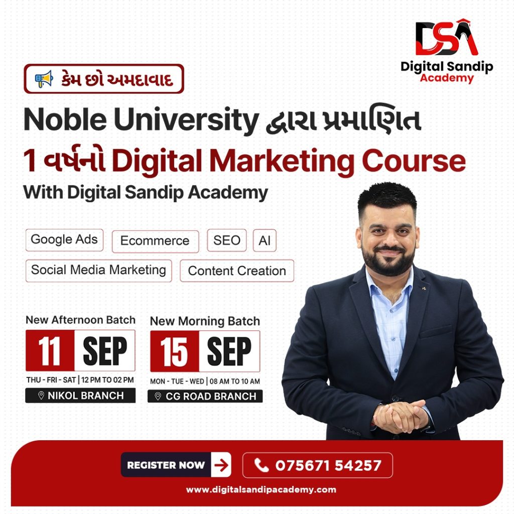 - With Digital Sandip Academy’s Online Masters in Digital Marketing course in Ahmedabad, you can easily enhance your digital marketing skills and make your successful career in Digital Marketing.